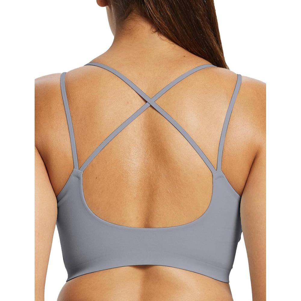 baleaf everleaf Women’s Sports Bra Longline, Molded Cup Yoga Bra Thin Strap Low Impact Workout Crop Tank Tops(Dark Gray)