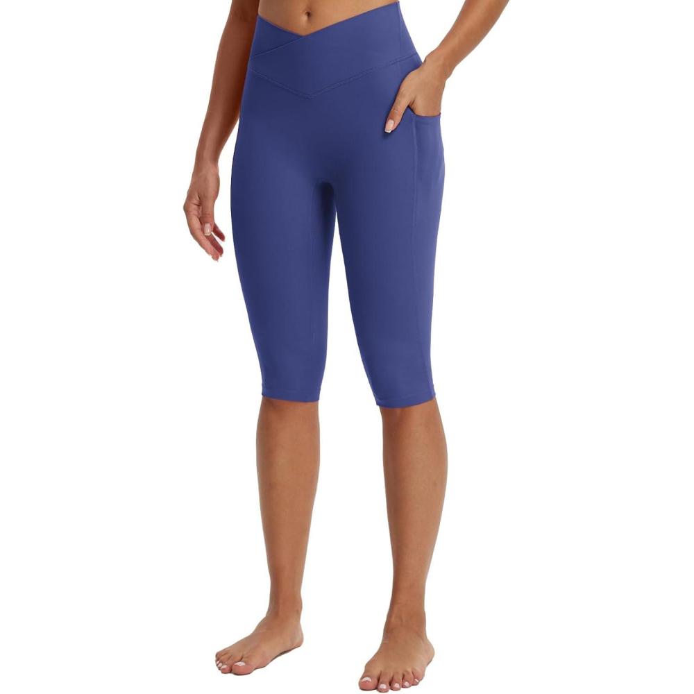 baleaf Capri Leggings for Women Knee Length Yoga Workout Capirs Leggings with Pockets Tummy Control Stretch(Classic Navy)