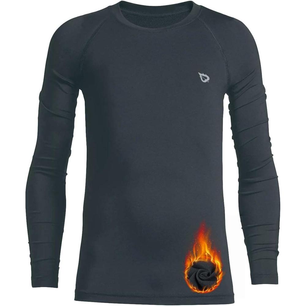 baleaf Boys Thermal Compression Shirts Youth Long Sleeve Fleece Base Layer Soccer Football Cold Gear(01-gray)