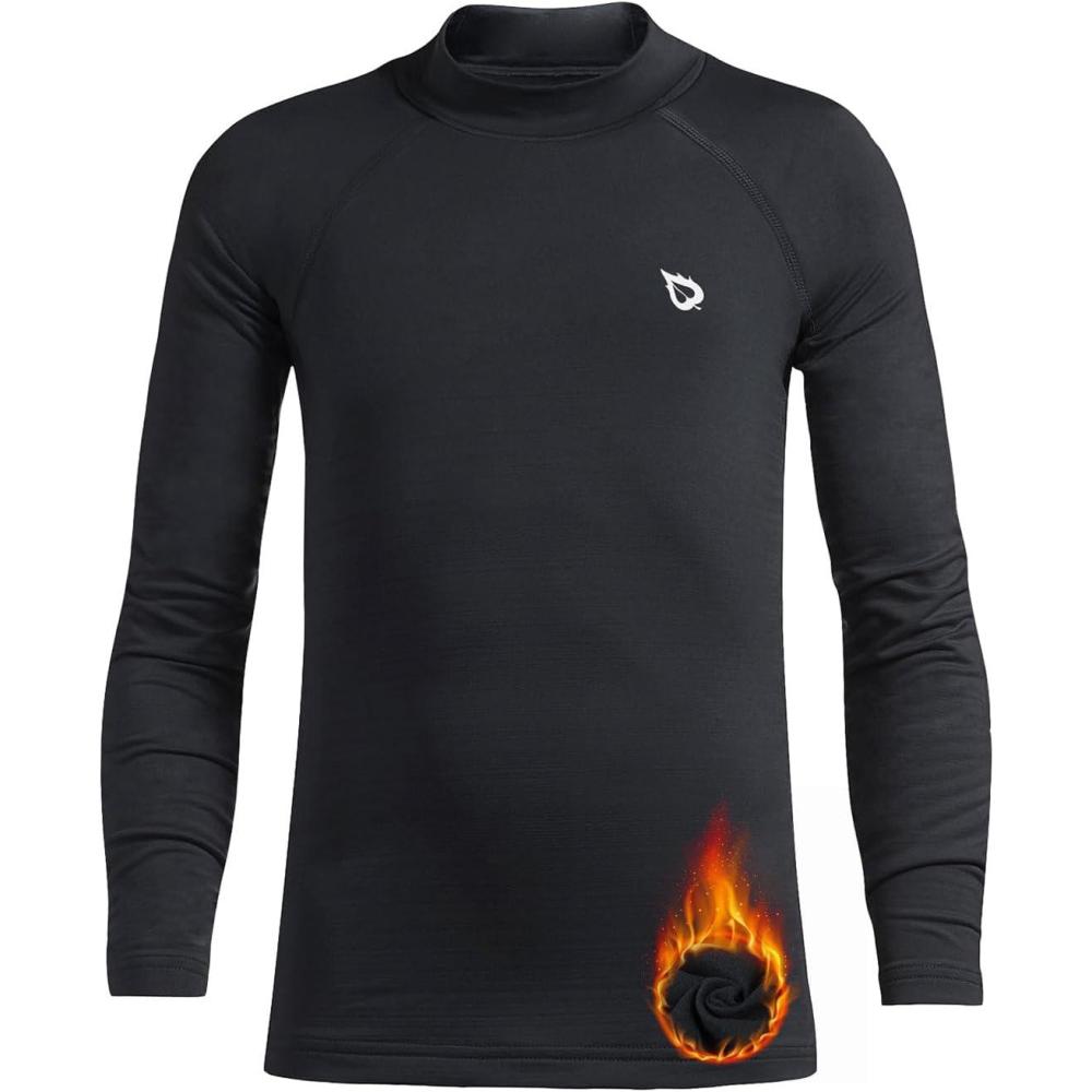 baleaf Boys Thermal Compression Shirts Youth Long Sleeve Fleece Base Layer Soccer Football Cold Gear(02-black)