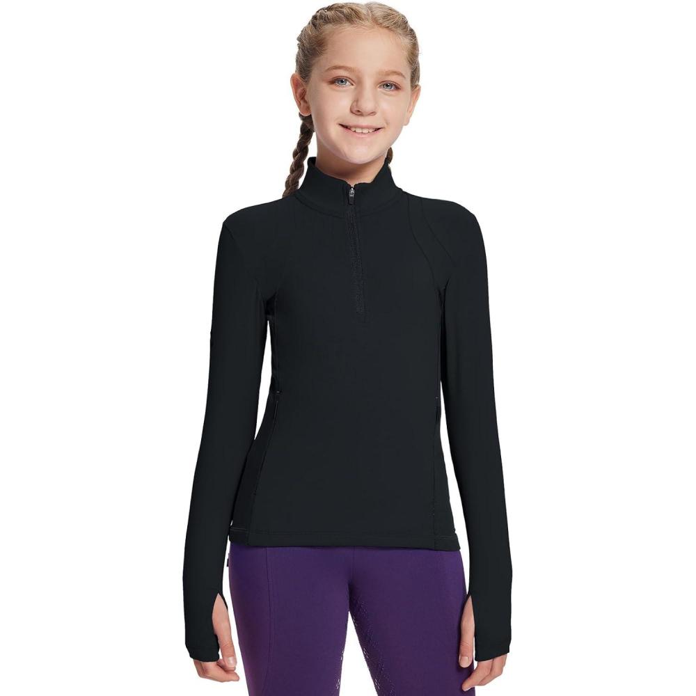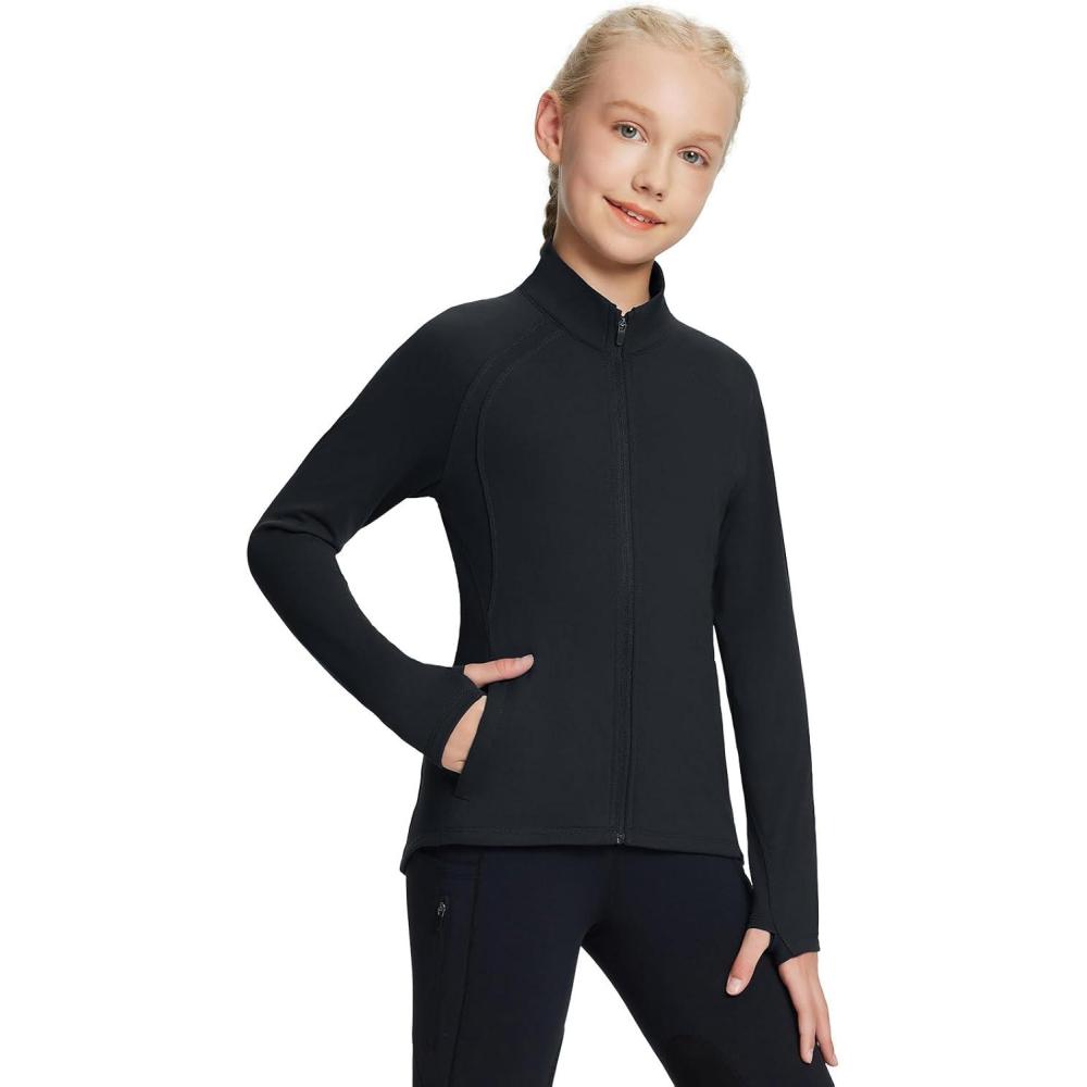 baleaf Fleece Girls Jacket Zip Up Fall Jackets Kids Equestrian Riding Shirts Thermal Athletic Sweatshirts Warm(Black)