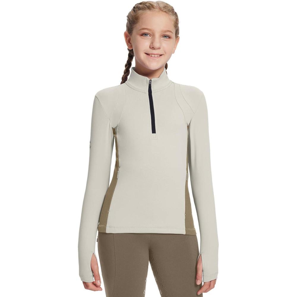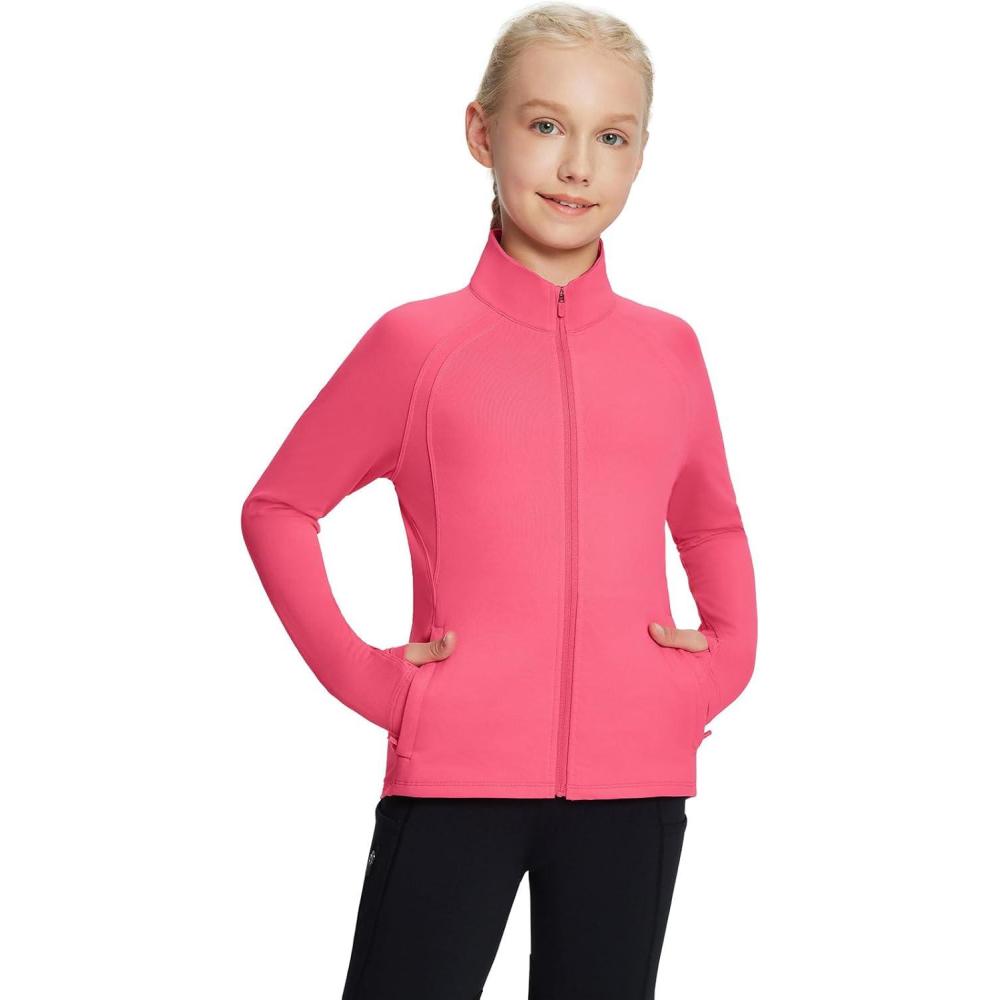 baleaf Fleece Girls Jacket Zip Up Fall Jackets Kids Equestrian Riding Shirts Thermal Athletic Sweatshirts Warm(Pink)