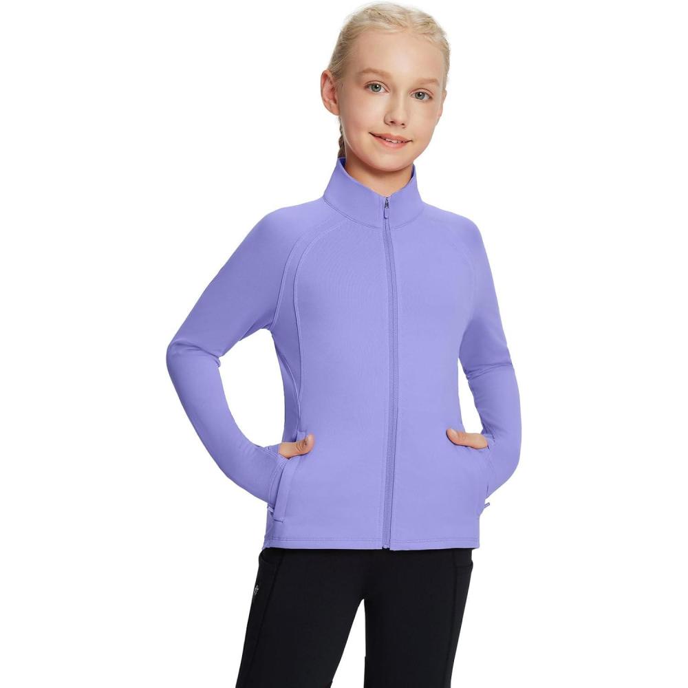 baleaf Fleece Girls Jacket Zip Up Fall Jackets Kids Equestrian Riding Shirts Thermal Athletic Sweatshirts Warm(Purple)