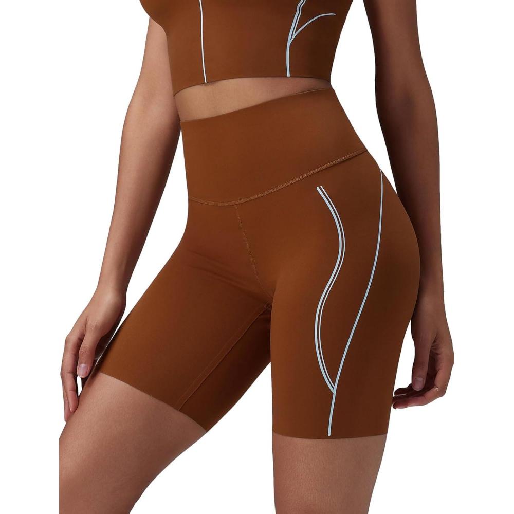 baleaf Freeleaf Broadway Women’s Biker Shorts with Pockets, Dance Yoga Workout Gym Running 8″ High Waist Short Pants(Brown)