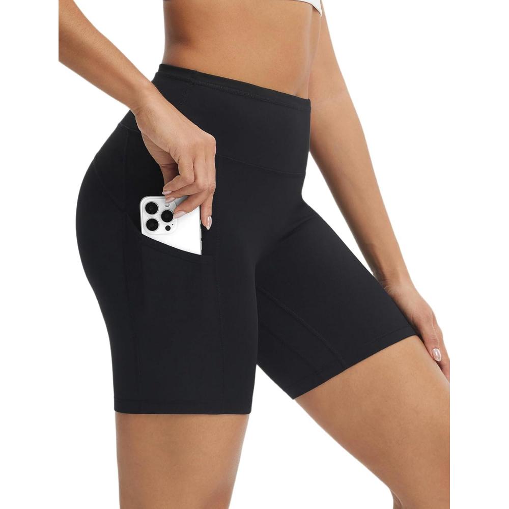 baleaf Biker Shorts for Women High Waist Tummy Control with Pockets Yoga Workout Gym Bike Shorts No Front Seam(Black/Black)