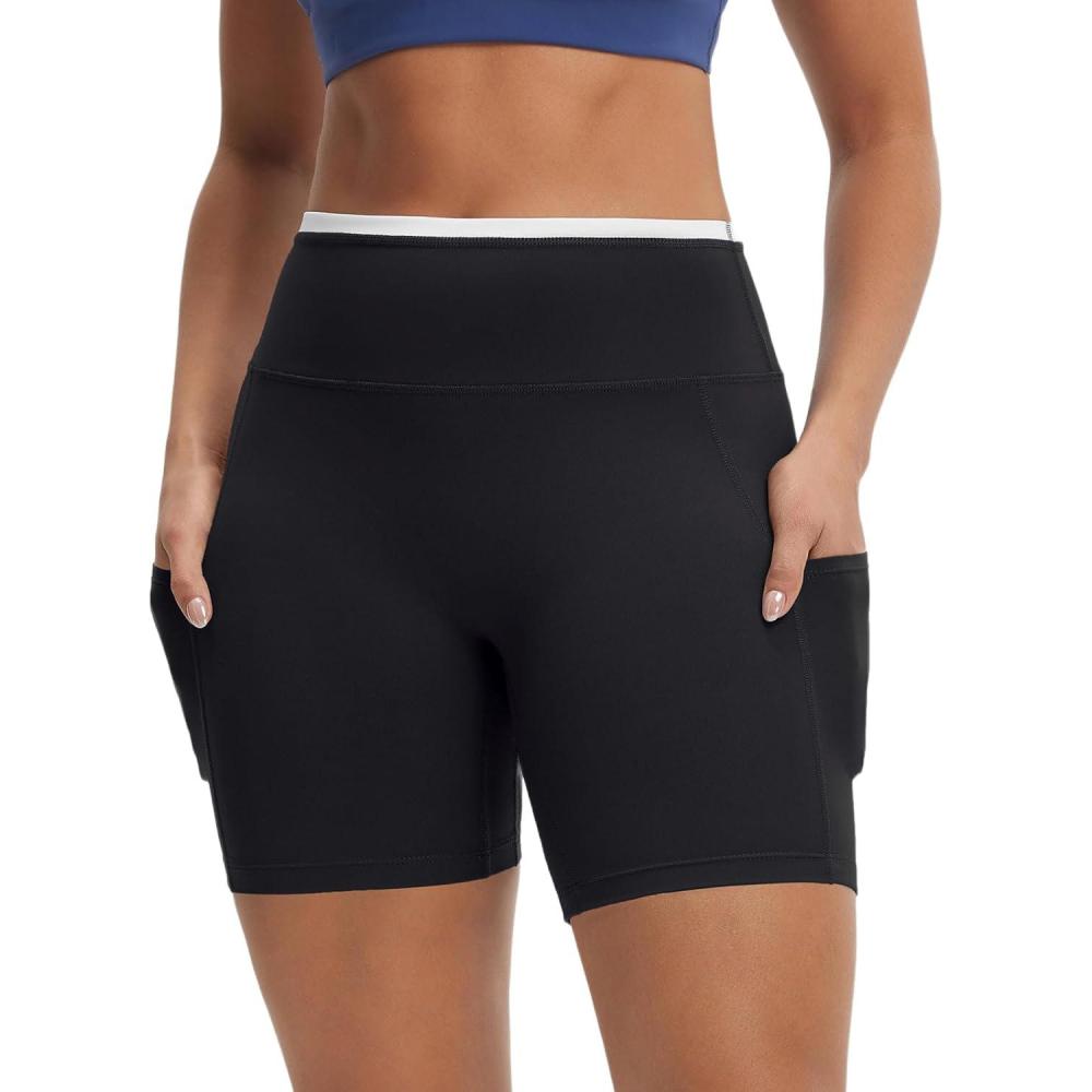 baleaf Biker Shorts for Women High Waist Tummy Control with Pockets Yoga Workout Gym Bike Shorts No Front Seam(Black/White)