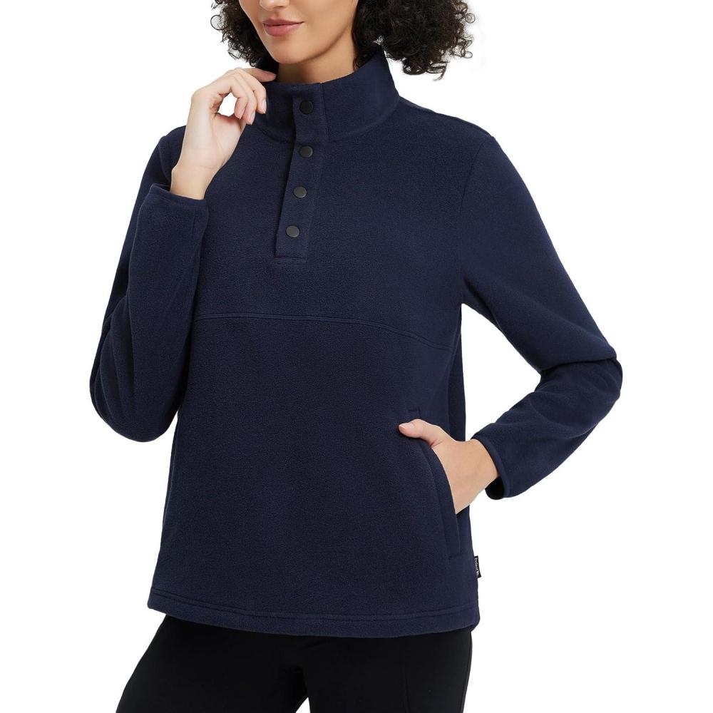 baleaf Women’s 1/4 Buttom Down Fleece Pullover Thermal Long Sleeve Shirts Ski Mid Layer with Pockets Thumbhole Warm Tops(Blue)