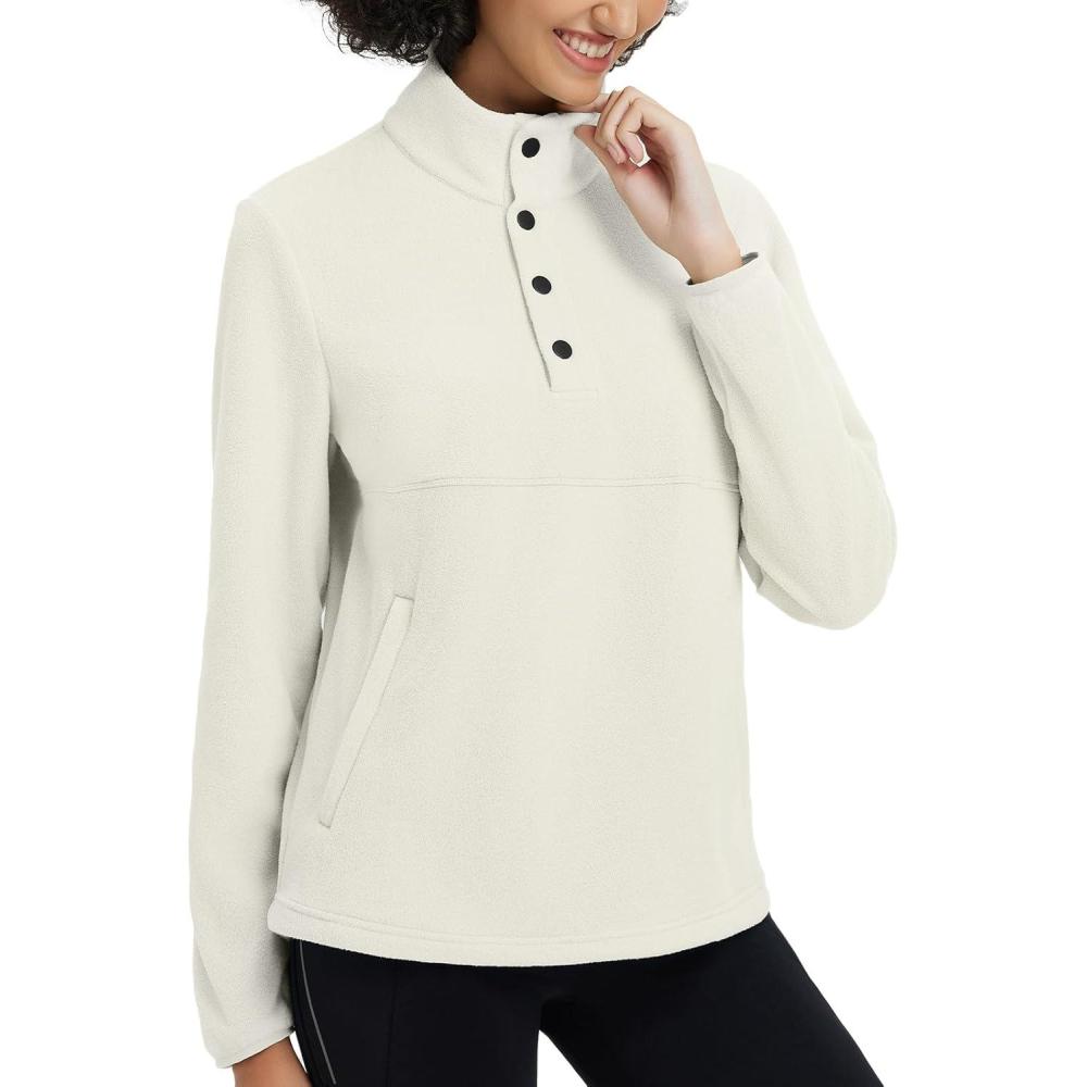baleaf Women’s 1/4 Buttom Down Fleece Pullover Thermal Long Sleeve Shirts Ski Mid Layer with Pockets Thumbhole Warm Tops(White)