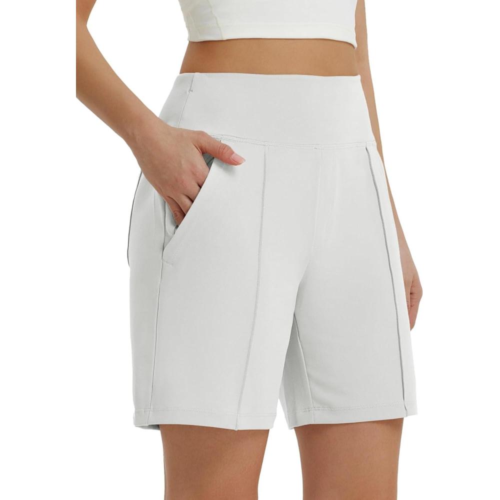baleaf Women’s 7 Inch Bermuda Long Shorts with Zipper Pockets High Waisted Athletic Shorts Walking Dressy Casual Loose(White)