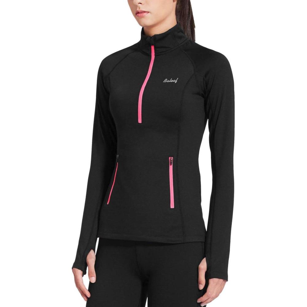 baleaf Women’s Running Jacket Thermal Fleece Pullover Half Zip Tops Thumbholes Winter Long Sleeve Cold Weather(Black)