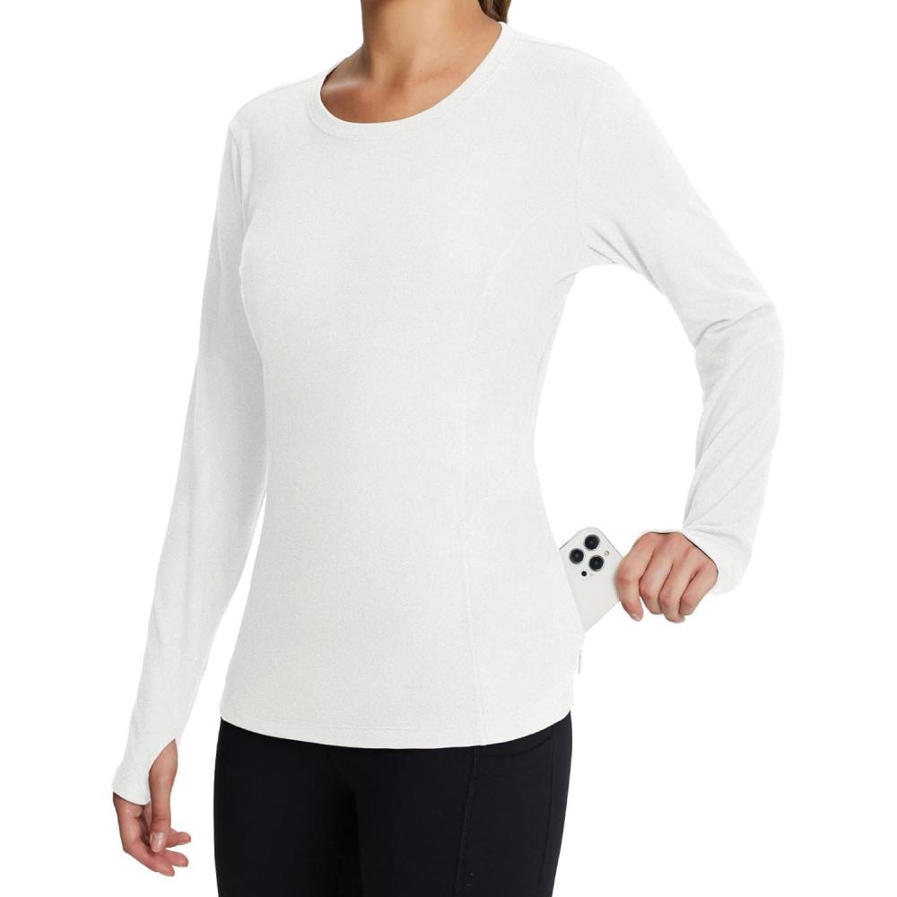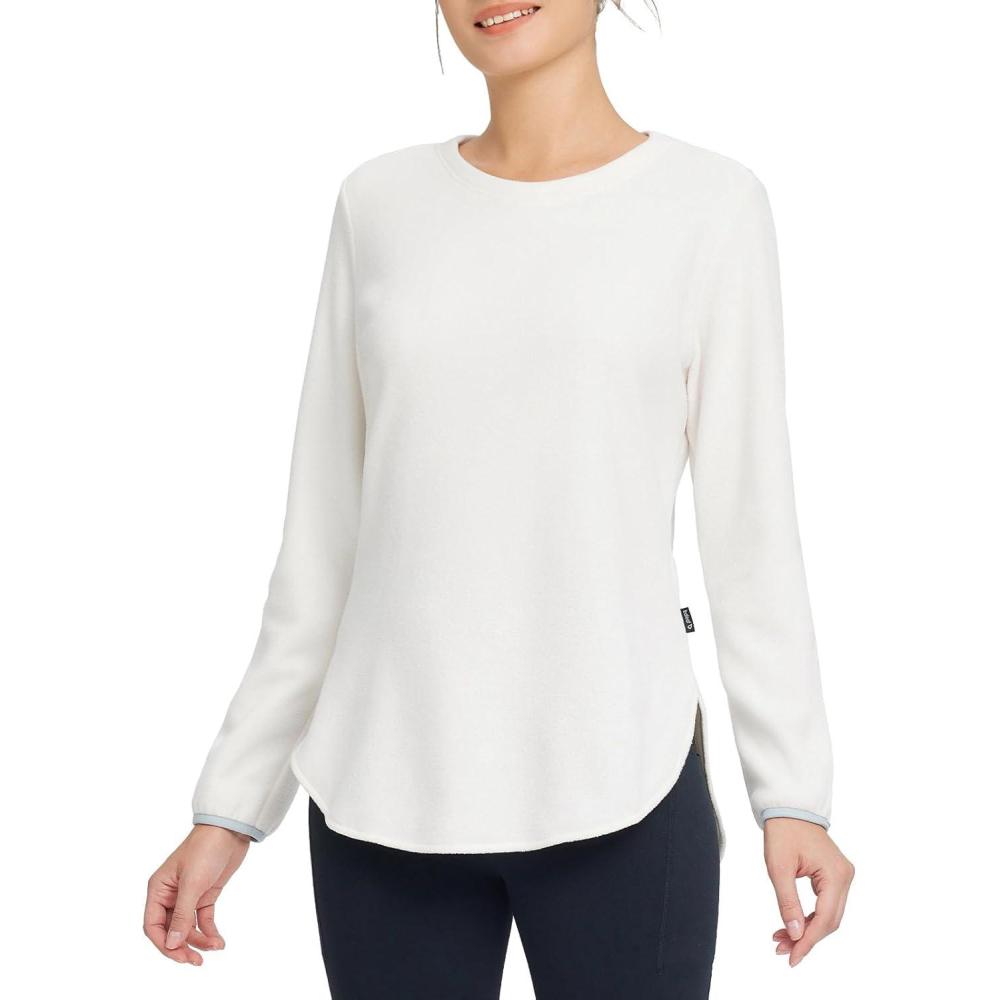baleaf Women’s Thermal Shirts Polar Fleece Tops Long Sleeve Tunic Warm Running Workout Winter Cold Weather Hiking(Birch White)