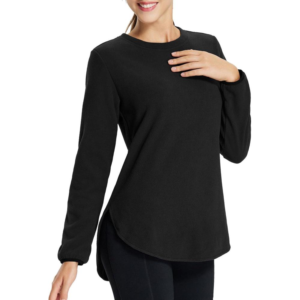 baleaf Women’s Thermal Shirts Polar Fleece Tops Long Sleeve Tunic Warm Running Workout Winter Cold Weather Hiking(Black)