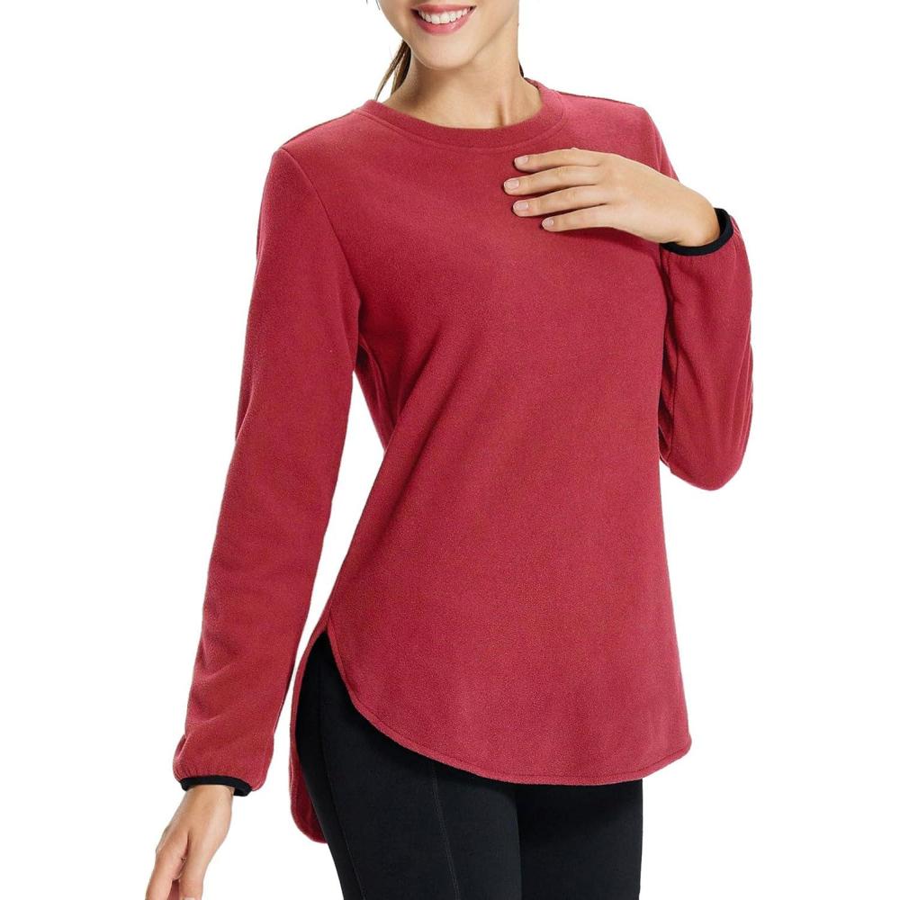baleaf Women’s Thermal Shirts Polar Fleece Tops Long Sleeve Tunic Warm Running Workout Winter Cold Weather Hiking(Dark Red)