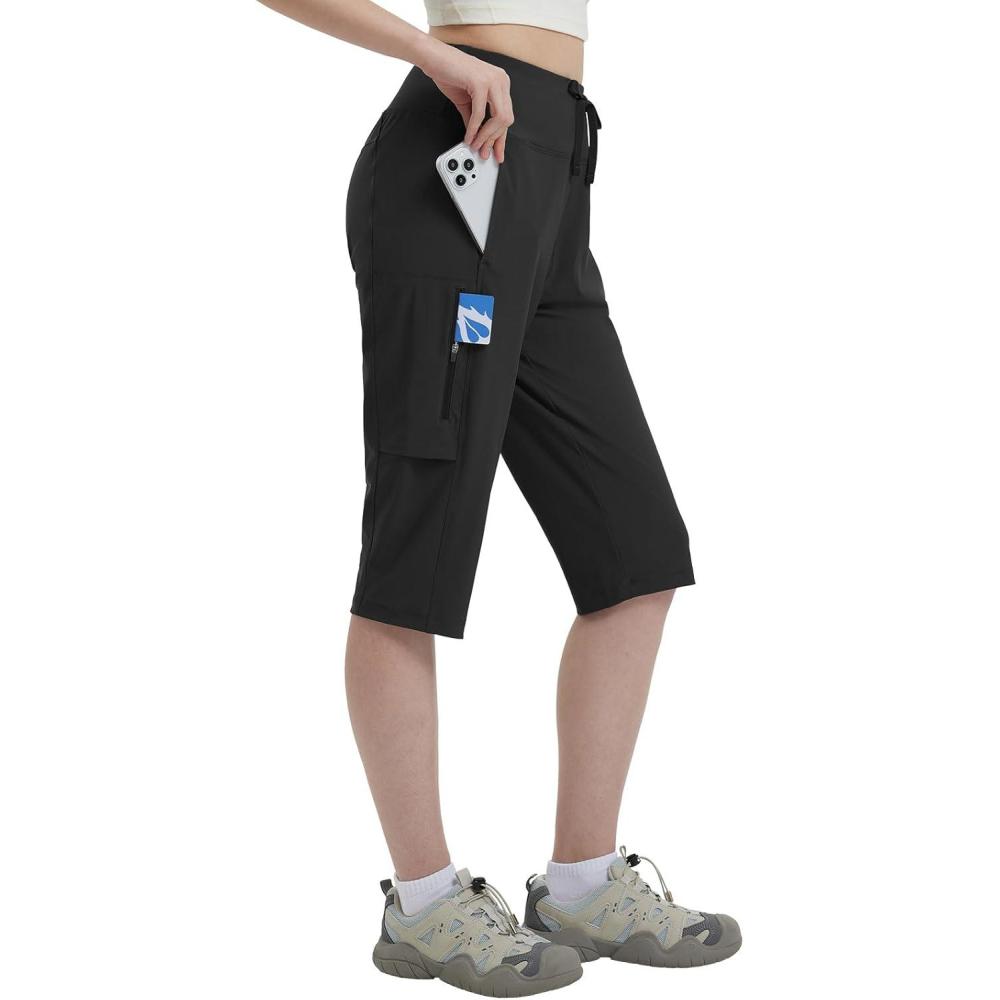 baleaf 15” Long Shorts for Women Hiking Knee Length Quick Dry Cargo Capri Pants Bermuda Stretchy Lightweight(Black)