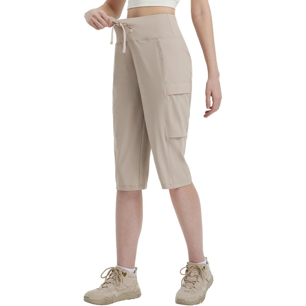 baleaf 15” Long Shorts for Women Hiking Knee Length Quick Dry Cargo Capri Pants Bermuda Stretchy Lightweight(Khaki)