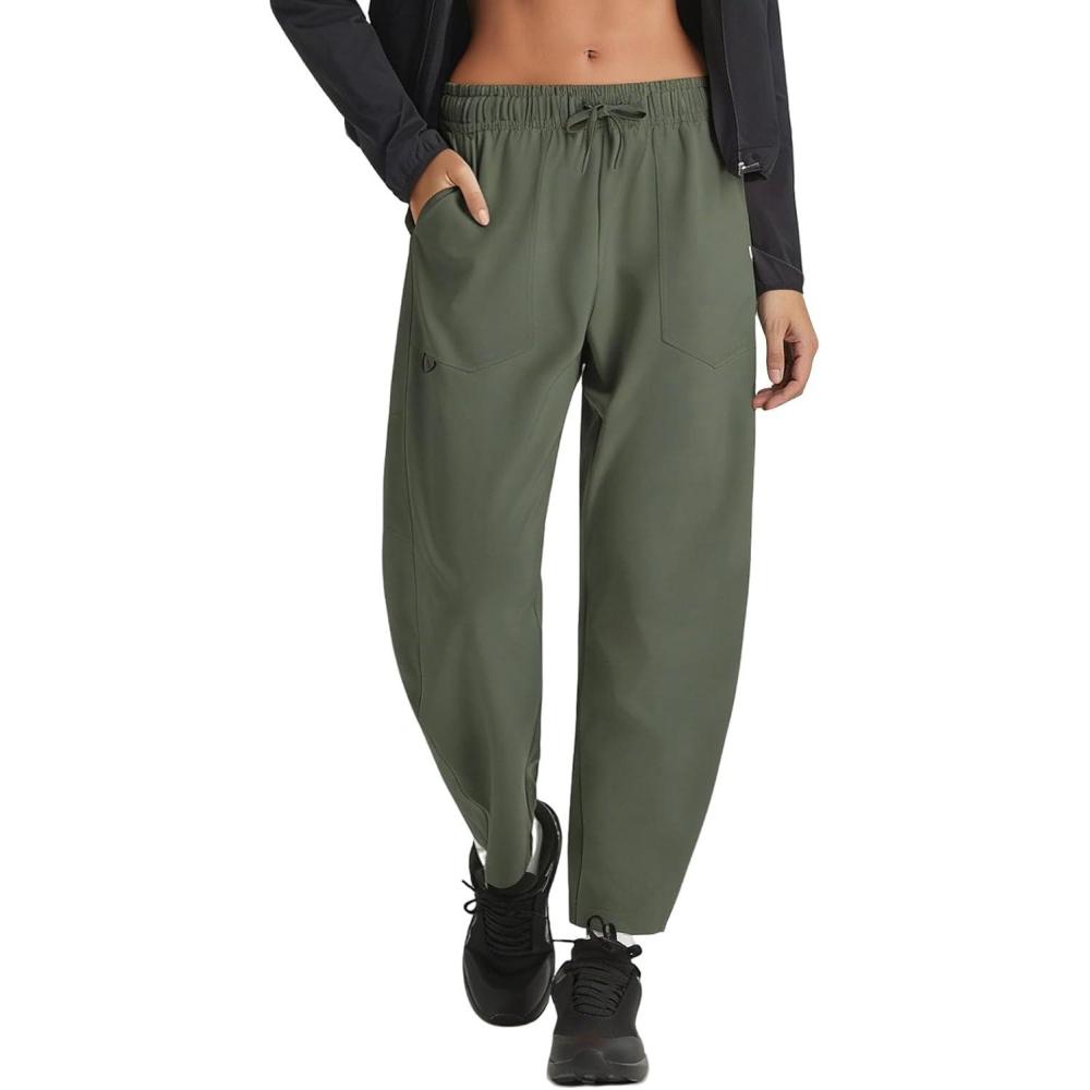 baleaf Women’s Barrel Hiking Ankle Pants Water Resistant UPF 50 Travel Baggy Ripstop Trousers with 5 Pockets Casual Slacks(Army Green)