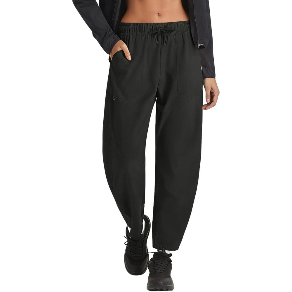 baleaf Women’s Barrel Hiking Ankle Pants Water Resistant UPF 50 Travel Baggy Ripstop Trousers with 5 Pockets Casual Slacks(Black)