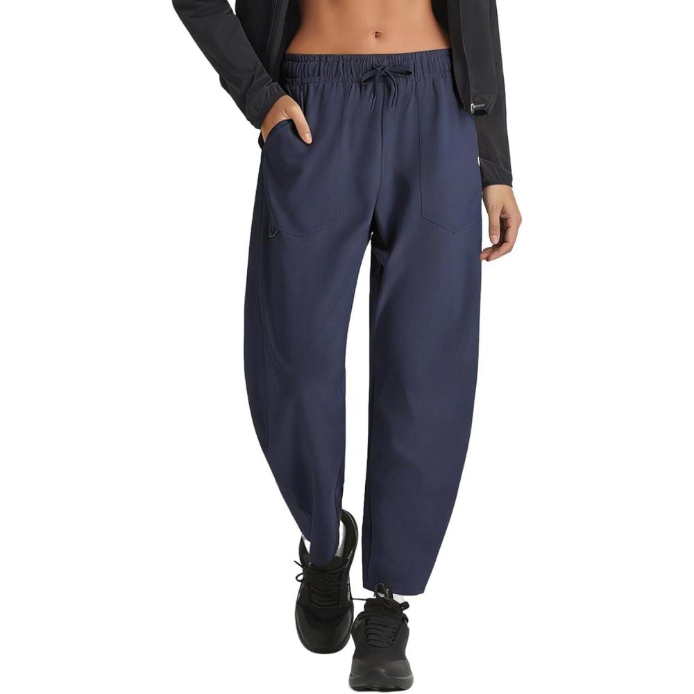 baleaf Women’s Barrel Hiking Ankle Pants Water Resistant UPF 50 Travel Baggy Ripstop Trousers with 5 Pockets Casual Slacks(Navy Blue)