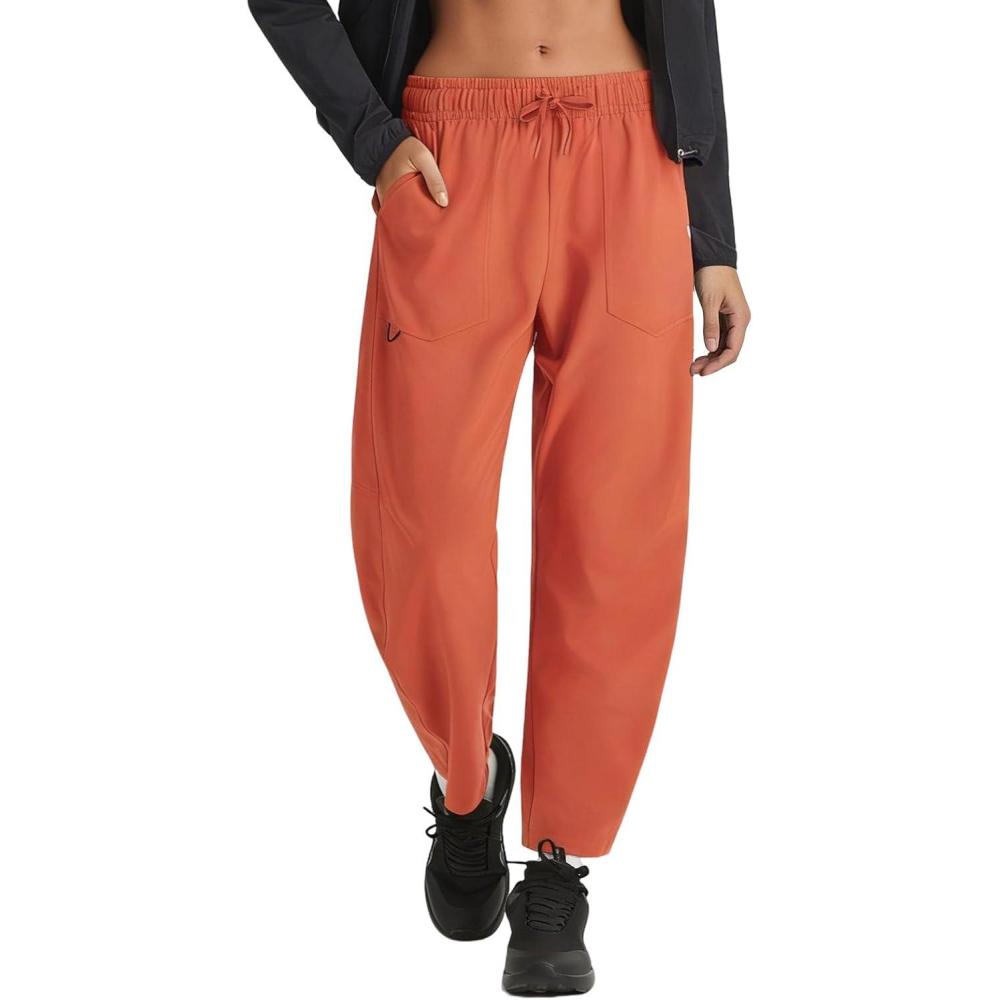 baleaf Women’s Barrel Hiking Ankle Pants Water Resistant UPF 50 Travel Baggy Ripstop Trousers with 5 Pockets Casual Slacks(Rust)